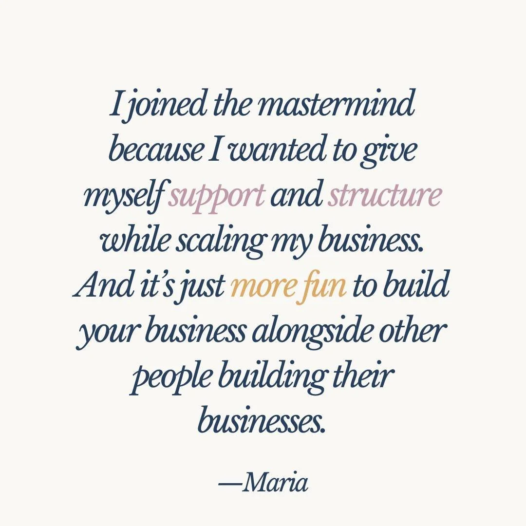 I joined the mastermind because I wanted to give myself support and structure while scaling my business. And it’s just more fun to build your business alongside other people building their businesses.